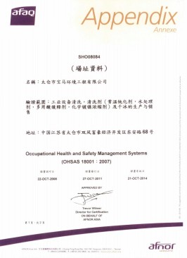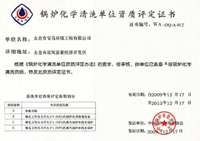 已經(jīng)獲得最嚴格的法國AFAQ-EAQA ISO9001、ISO14001、OHSAS18001認證,取得電廠鍋爐化學(xué)清洗A級資質(zhì)。